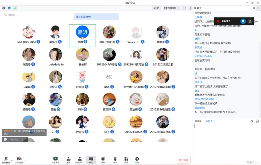 之后,会议进入提问环节,针对同学们在实习前准备过程中遇到的问题,田嘉明老师与辅导员老师进行了一系列针对性的解答。