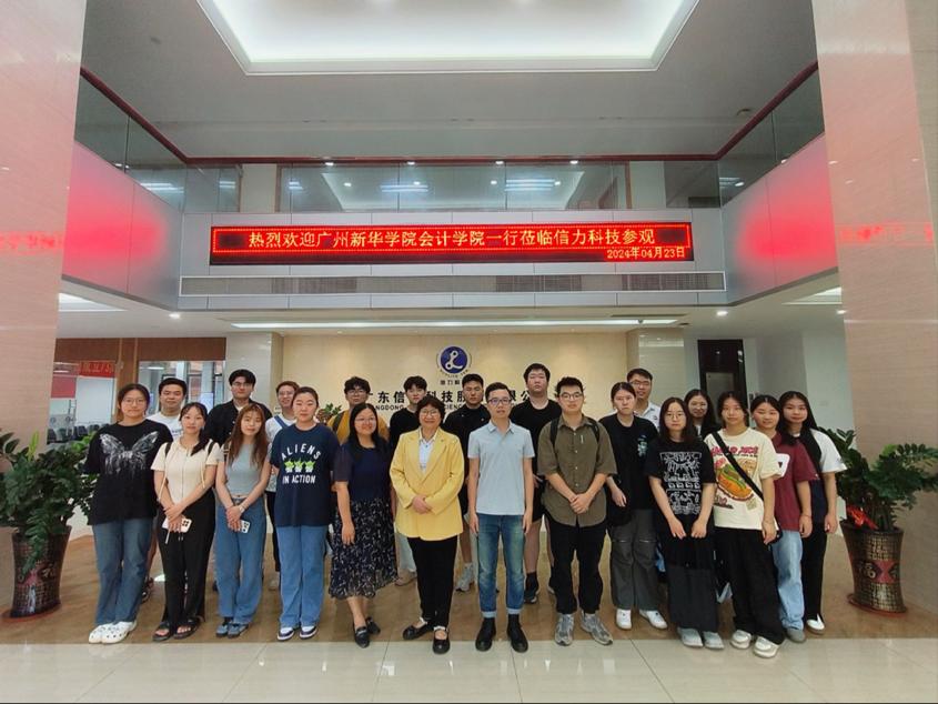 2024年4月23日,太阳成集团tyc33455会计学院2021级CIMA方向班开展企业参访活动,由学院党总支书记李安兰亲自带队,走进位于东莞市麻涌镇的广东信力科技股份有限公司(简称“信力科技”)进行参观学习。党总支副书记邓楚云老师、专职教师黄建清老师、陈桂昌老师、辅导员付迪老师和田嘉明老师一同参加了本次活动。