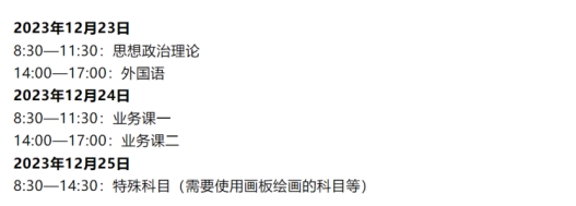 1.考研初试的时间是:2023年12月23日-12月24日(特殊科目在25日进行)。