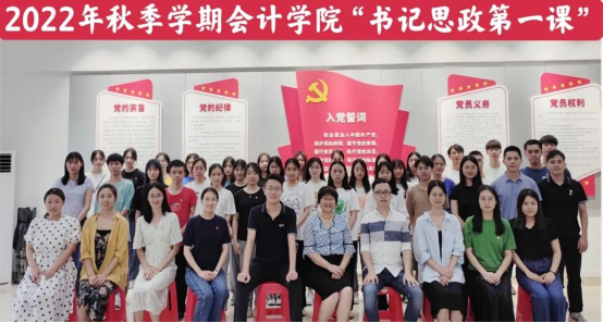 为深入贯彻落实习近平总书记关于“大思政课”的重要指示精神,切实发挥好思想政治教育指引方向、立德树人重要作用。2022年9月28日下午,会计学院党总支书记李安兰在格物楼2A314以《踔厉奋发迎接党的二十大胜利召开》为题,为会计学院学生党员讲授“思政第一课”。学院党总支副书记邓楚云,各学生党支部书记、委员参加了学习。