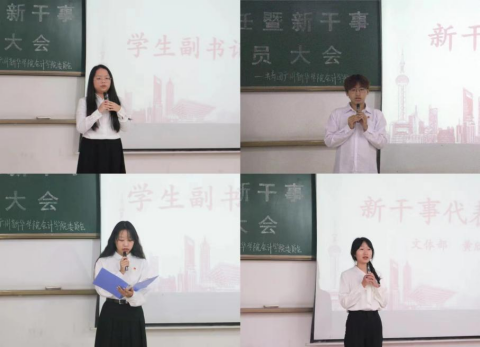 图五:学生副书记寄语(左)新干事发言(右)