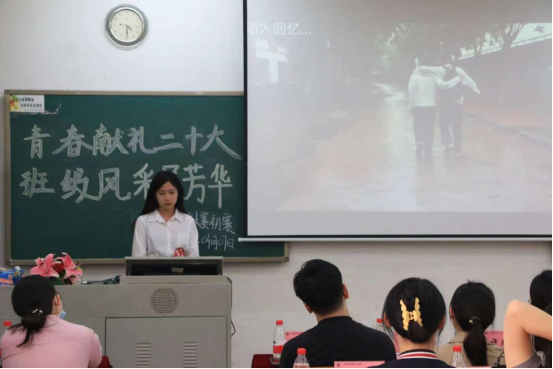 比赛过程中,每位班级代表从班级基本情况、班级团学建设、班级学风建设以及班级活动这四个方面对班级的总体整体情况进行介绍。