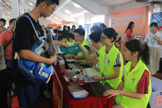 九月流金,层林尽染,伴随着行李箱密在地上滑过的沙沙声,阳光倾洒的林荫下迎来一群背囊揣志眼睛充满期待与好奇的会院小萌新。校园内的各个角落都有会计学院志愿者忙碌而充满热情的身影,他们身穿马甲,手举指示牌,为新生寻找各自专业的注册点与接待处提供便利。新生班助和在场老师们细心指导着每一位新生完成报到的各个流程,给他们讲解学校的基本情况和注意事项,并给新生分发了小礼品,同时提醒新生们注意自身安全,加强个人财产保护意识。