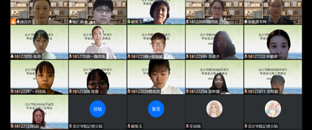 经过三天紧张有序的答辩,同学们不仅向评委老师们展示了他们良好的精神面貌,也以云答辩这种特殊的方式给自己的大学生涯提交了一张特殊而完美的成绩单,相信我们2020届的同学能以同样的积极与热情走向社会,取得更大的进步和更好的发展。而会计学院首次开展的毕业论文“云”普查和“云”答辩得以顺利进行,也为今后开展线上多种类型的教学活动积累了经验,奠定了良好的基础。