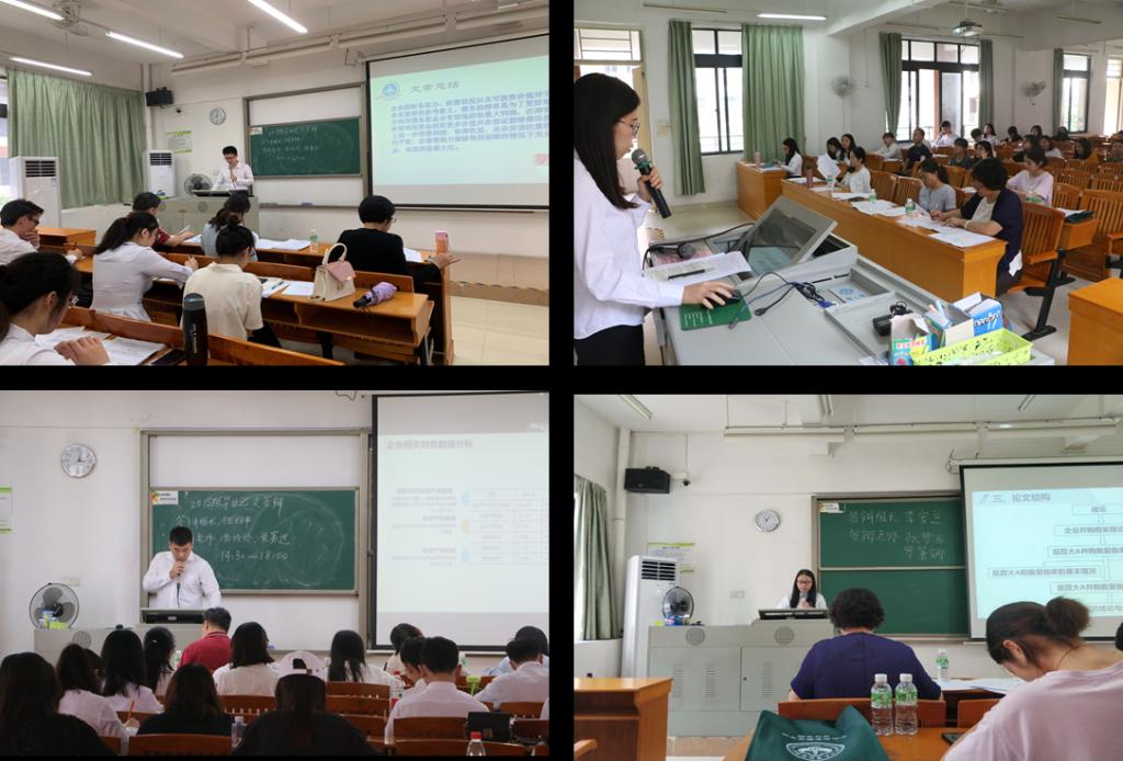 在答辩过程中,大多数同学都能根据老师的提问及对自己撰写论文的理解,从选题背景、研究思路、创新之处、研究内容、研究价值和现实意义等方面进行陈述,并对老师们提出的问题一一进行了回答,获得了答辩老师的充分肯定。同时答辩老师们针对学生的毕业论文中存在的不足,也给予了现场指导并提出修改意见。
