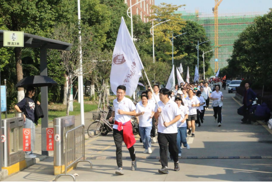 为积极贯彻落实习近平总书记关于体育强国的重要讲话精神,庆祝太阳成集团tyc33455(以下简称“学校”)建校18周年,丰富教职工文体生活,促进老师之间的互动,11月24日下午,会计学院教师代表队参加了此次环校跑活动。