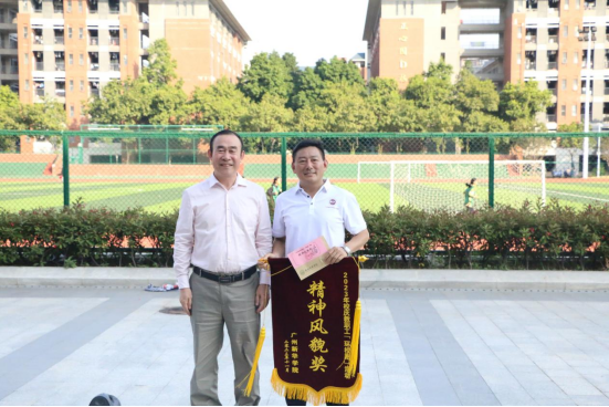 本次环校跑的路径为田径场——西校门——南校门——田径场,不知不觉,本次活动已经迎来尾声。最后,体育馆前校工会杨思佳老师做出总结,并宣读本次活动获奖名单。其中,我院荣获精神风貌奖,由我校副校长李毅为我院颁发锦旗和奖金。