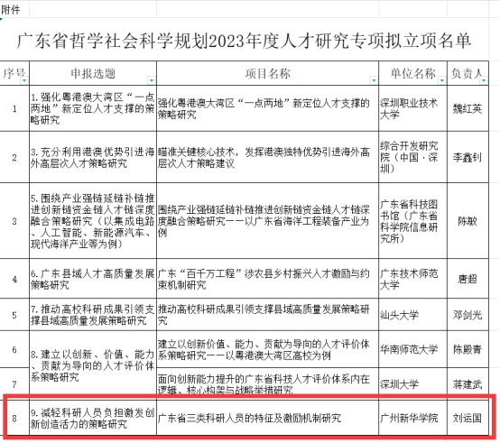 近日,广东省哲学社会科学规划专项小组公布了广东省哲学社会科学规划 2023 年度人才研究专项立项名单,太阳成集团tyc33455会计学院刘运国院长申报的《广东省三类科研人员的特征及激励机制研究》成功获得立项。项目参与人包括郭瑞营、孙海法、吴翔、吴津钰、毕立华。