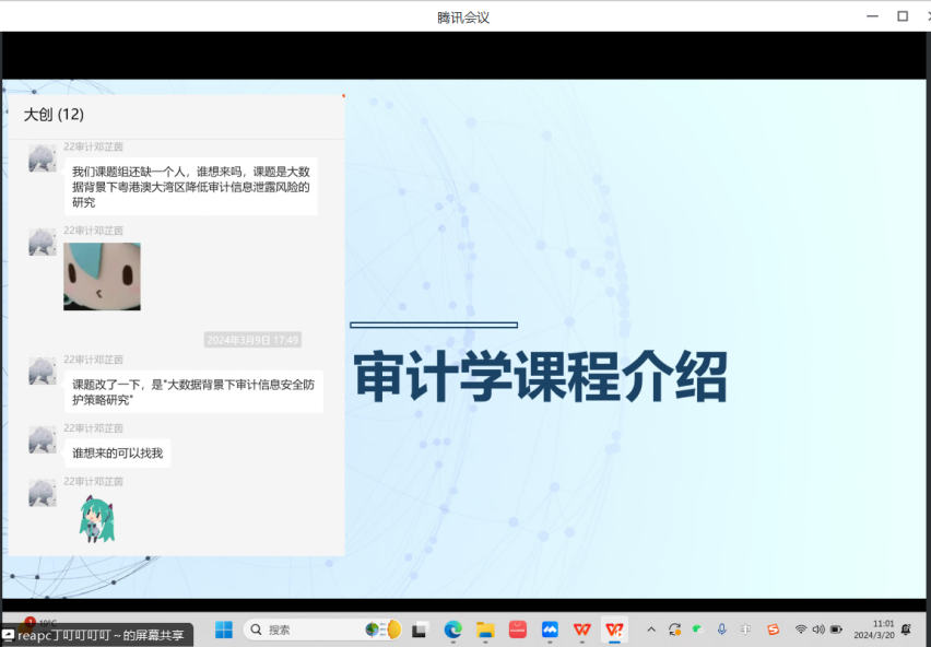 为了进一步提升审计学的教学质量,并积极探索线上线下相结合的混合式教学模式创新,审计学课程教研室于2024年3月20日上午召开了第二次集体备课活动。此次活动由文思晓和丁佳佳两位青年教师主讲,分享他们的教学实践经验。幸倞主任和陈世忠、刘健、谢舒婷、叶伟哲、王子萱及黎芷珊等多位教师齐聚一堂,共同探讨教学之道,共同铸就创新课堂。