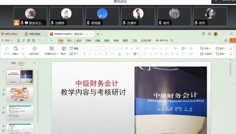 为了进一步提高中级财务会计的教学质量,2024年3月22日晚,会计教研室《中级财务会计》教学团队以高度的责任心和敬业精神,深入践行“以学生为中心”的教育理念,积极开展了一场别开生面的备课活动,旨在为本学期的教育教学工作打下坚实基础,赋能学生的全面发展。本次线上集体备课活动由颜金花老师主持,刘颖婷副教授、周禅、余婷芳、杨洁、沈倩环、李祖儿、蒋澧资、缪海媚等教师参与了会议。