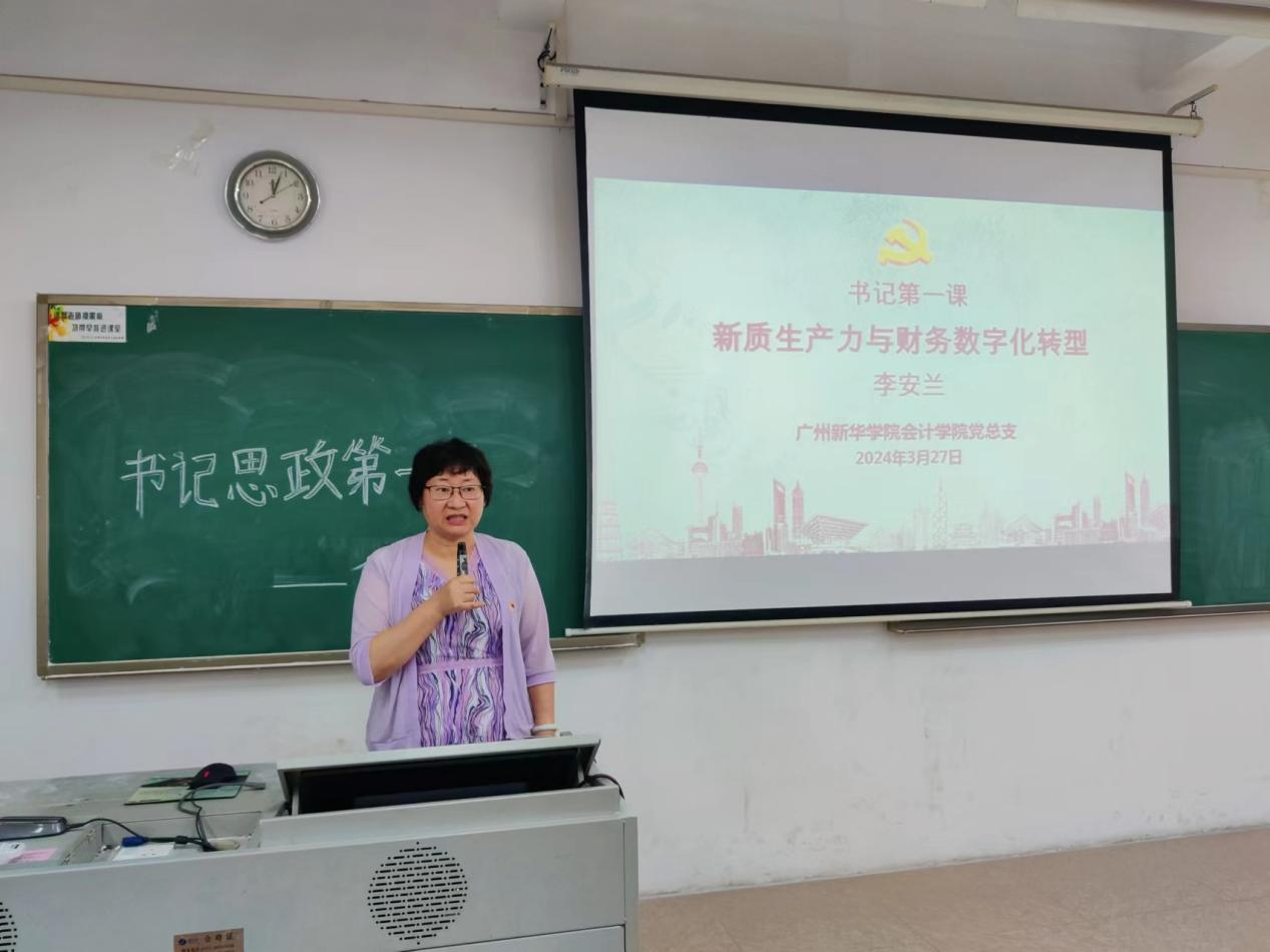 在深入贯彻落实习近平新时代中国特色社会主义思想的背景下,为进一步系统说明新质生产力与财务数字化转型相关问题,引导青年学生加强对党的各项方针政策的理解感悟,2024年3月27日上午,会计学院党总支书记李安兰教授以“新质生产力与财务数字化转型”为题,为会计学院党支部成员带来了新学期颇具启发性的“思政第一课”。学院党总支副书记邓楚云及各学生党支部书记、委员、会计学院部分学生党员参加了此次专题学习活动。
