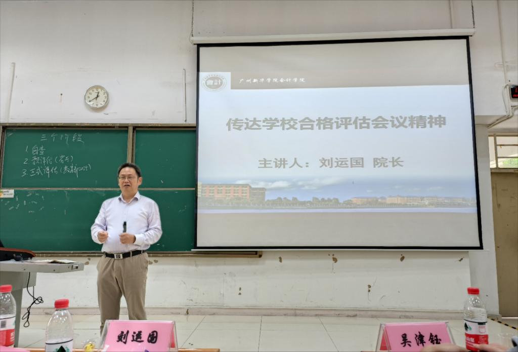 刘运国院长对教学质量评估的三个阶段——自查、预评估和正式评估进行了深度解读,要求全院上下自查自纠,以更充分的准备应对省教育厅的检查评估。他强调,在预评估阶段要虚心接受各级意见,总结经验教训,以饱满的精神状态迎接2025年教育部的正式评估。他还传达了学校合格评估精神,勉励全体教职工将“知”与“行”相结合,按照王校长和郝书记的指导思想,切实履行岗位职责,全力配合评估工作。同时,刘院长倡导会计学院营造浓厚的学术文化氛围,积极展示教学科研成果,实时更新网站信息,展示学院风采。