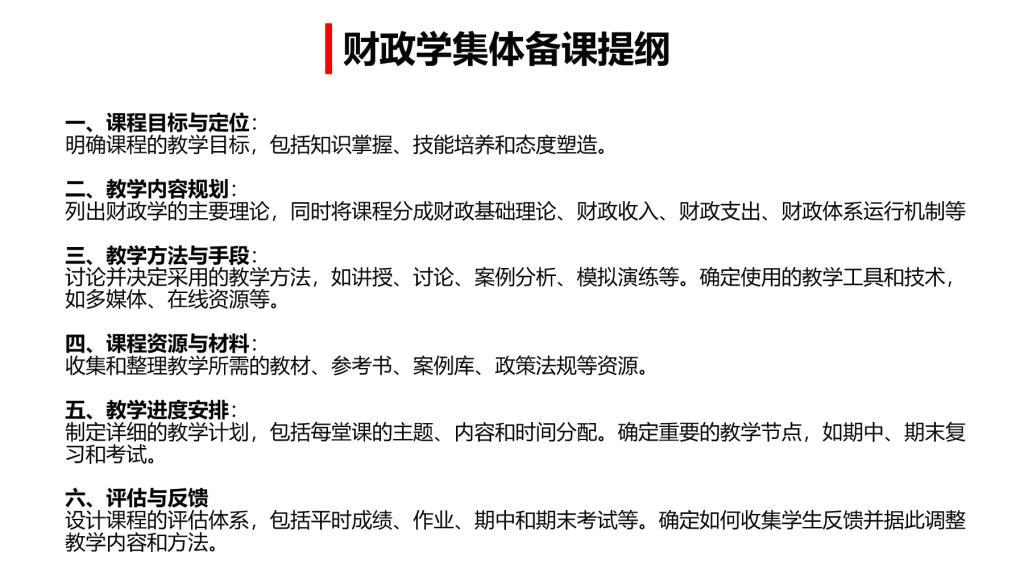 在集体备课期间,老师们首先回顾了财政学课程的教学目标和学生的学习需求,确保教学内容与学生未来的职业发展紧密相连。随后,老师们对财政学的理论框架进行了细致的梳理,力求将最新的财政政策和国际经验融入课程,使教学内容更加前沿和实用。