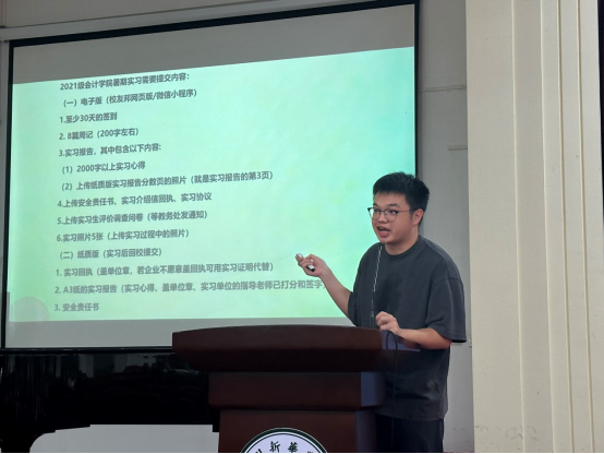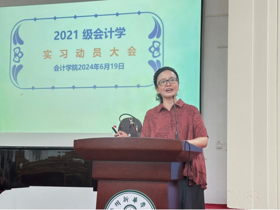 少年当立凌云志,奋起扬帆启新帆。为帮助学生更好地了解专业实习的重要性和具体要求,2024年6月19日,会计学院于定静楼1F203讲学厅召开2021级会计学实习动员会。此次动员会由会计系刘颖婷副主任主讲,教学秘书陈桂昌老师主持本次会议。