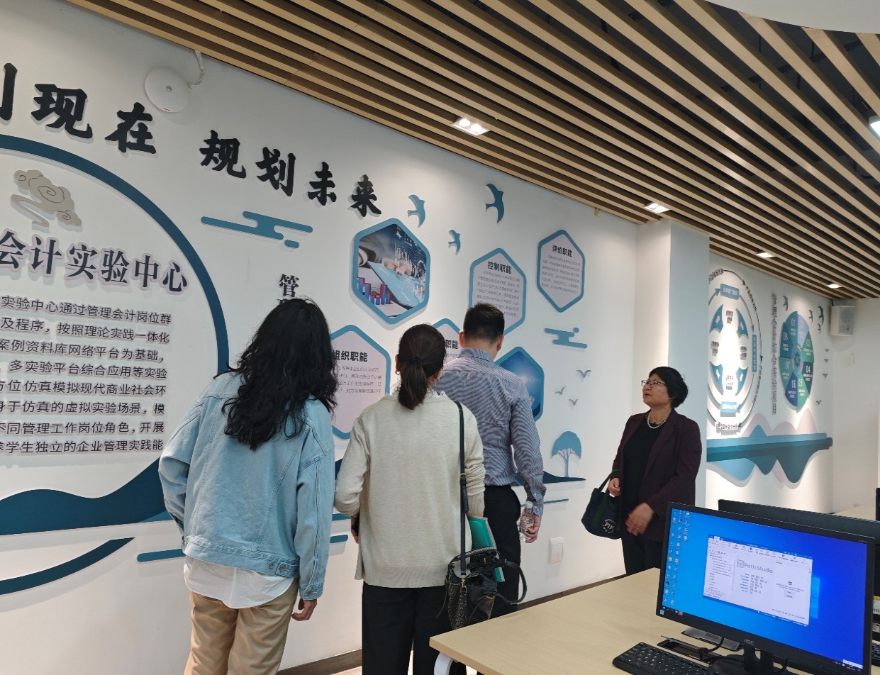 座谈会结束之后,纽约金融学院代表团在党总支书记李安兰与办公室主任莫燕银的陪同下,前往本校图书馆开展参观活动。代表团对图书馆为师生所提供的全方位科研支撑与学习保障予以了高度认可。随后,该代表团一行人员进入实验中心,实地考察了会计信息化实验中心的硬件设施以及教学运行情况。