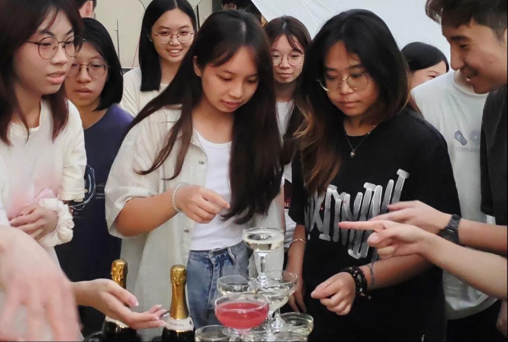 图| 同学们分发酒水